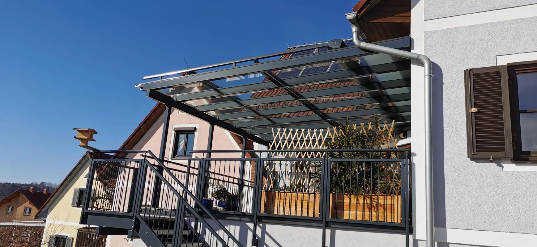 Schöne Optik und Langlebigkeit zeichnen unsere Terrassenüberdachungen aus.