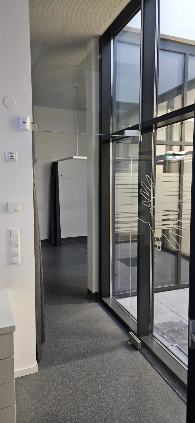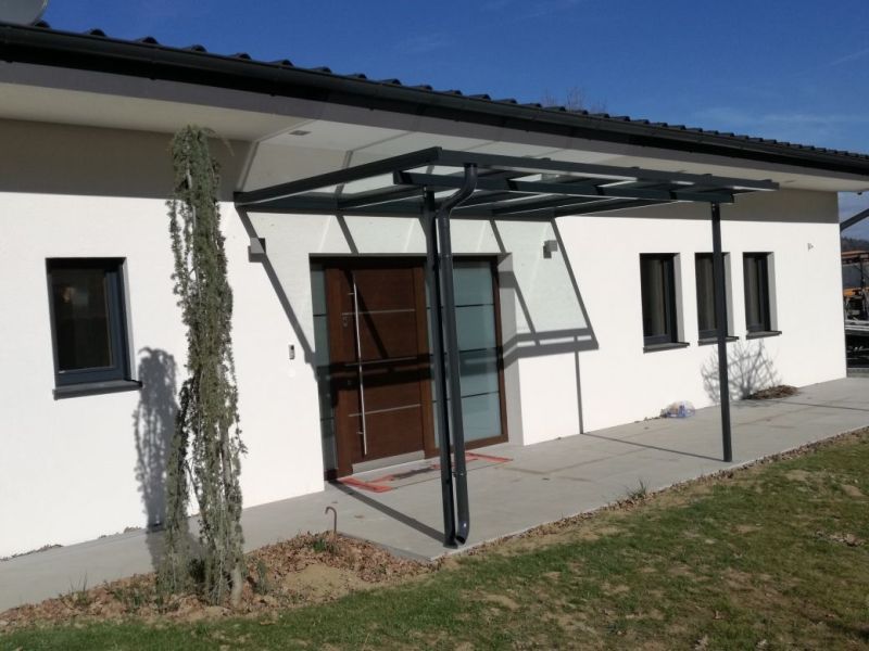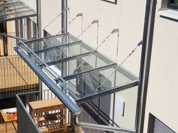 Selbst wenn nur wenig Platz vorhanden ist, finden wir eine Lösung wie von unten gestützte Glasvordächer.